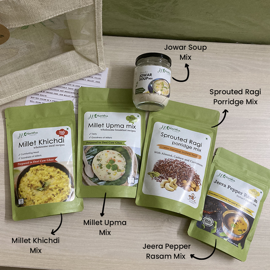 Millet Dosa Mix (500g), Millet Rava Idli mix (250g) and Millet Upma Mix (200g)
